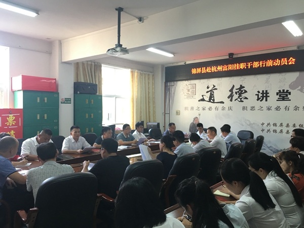 6月6日下午,锦屏县选派干部赴杭州富阳挂职工作行前动员会召开,赴富阳挂职的35名干部参加会议,并分别作表态
